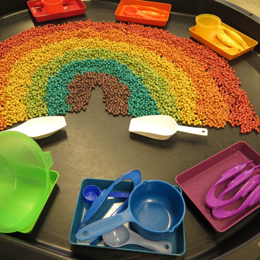 Forscherplatte - Regenbogen-Kichererbsen